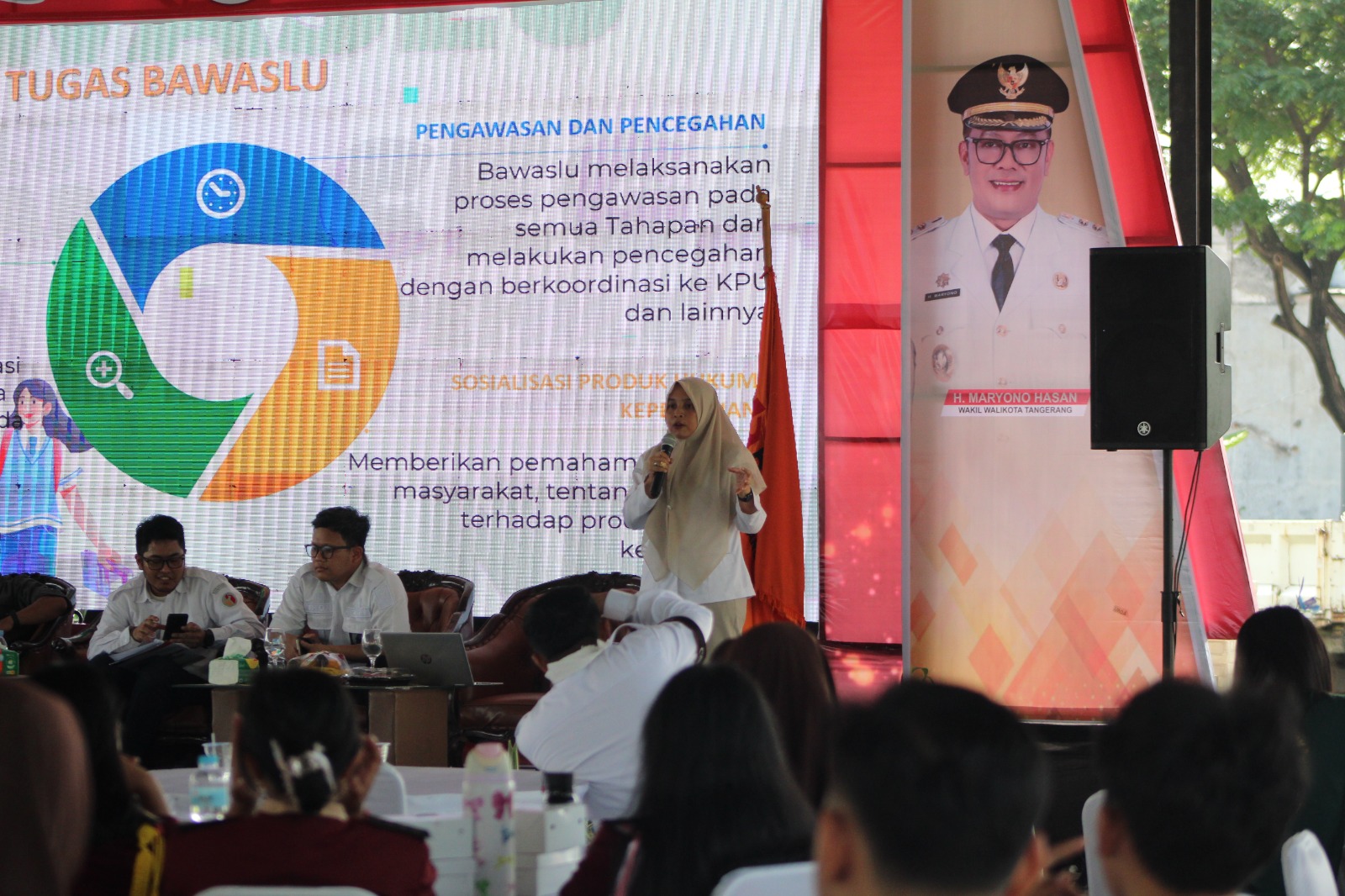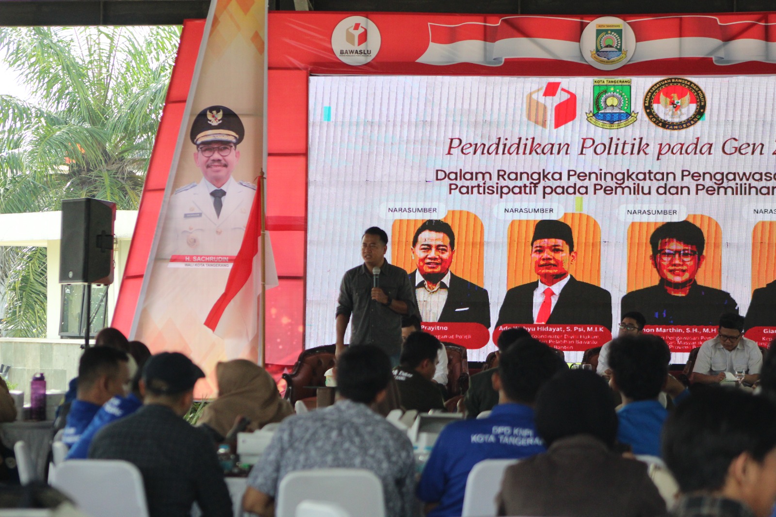 Badan Kesatuan Bangsa dan Politik (Kesbangpol) bersama Badan Pengawas Pemilihan Umum (Bawaslu) Kota Tangerang, menggelar Pendidikan Politik pada Gen Z. Yang dilaksanakan di Grha Bhakti Karya (GBK) Perumahan Modern Kota Tangerang. Rabu (22/10).
